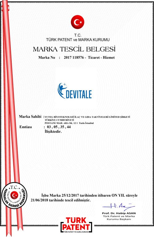Devitale Marka Tescil Belgesi: 25.12.2017