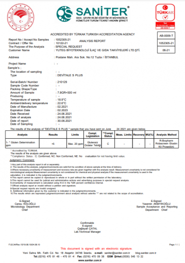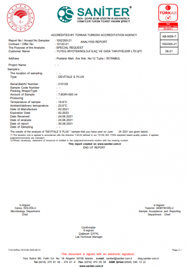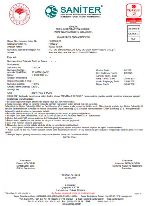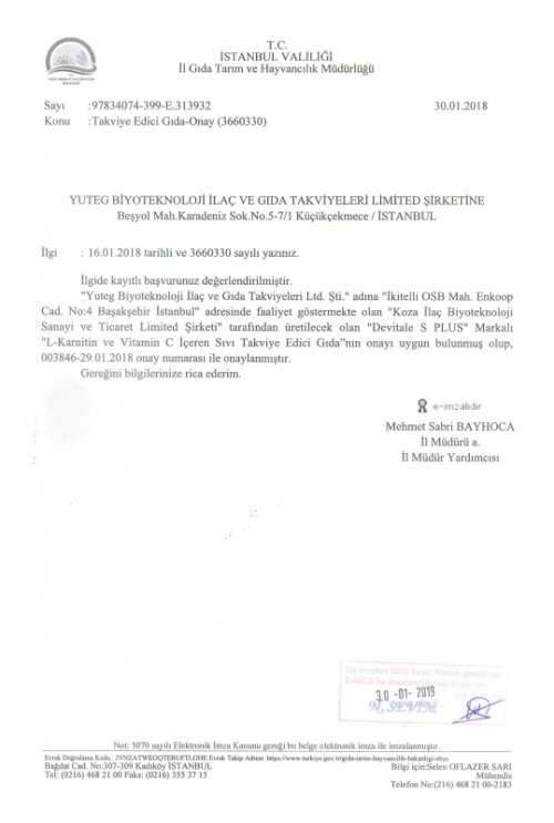 Devitale Splus Ürünü Bakanlık Onayı: 29.01.2018